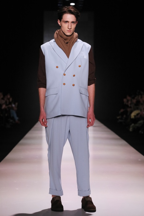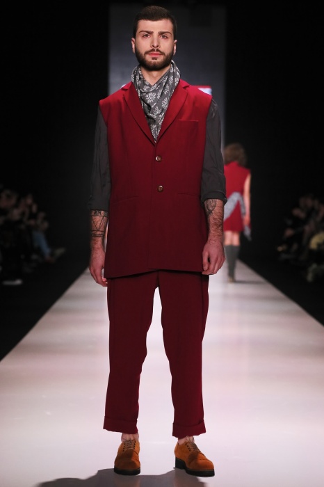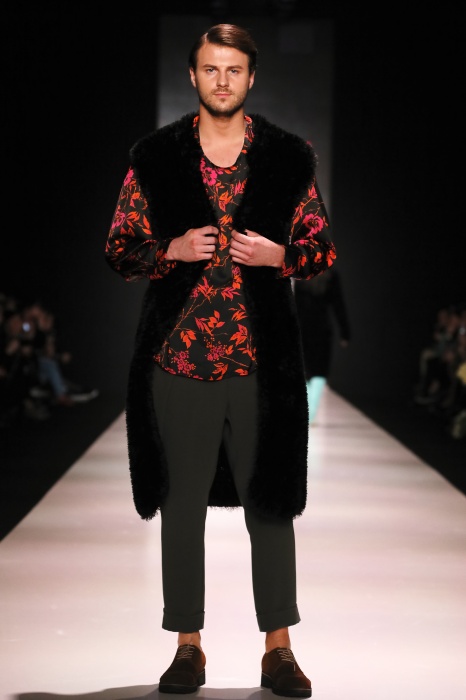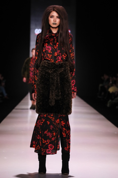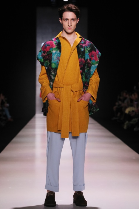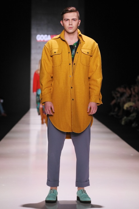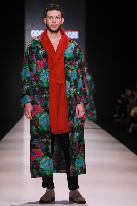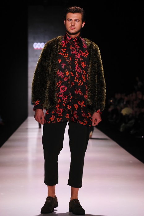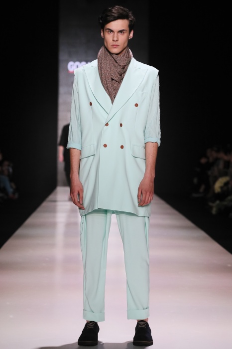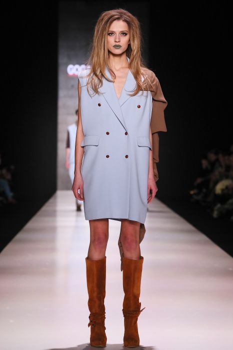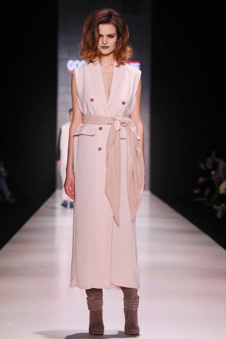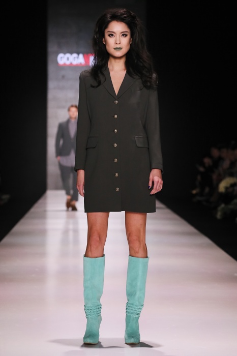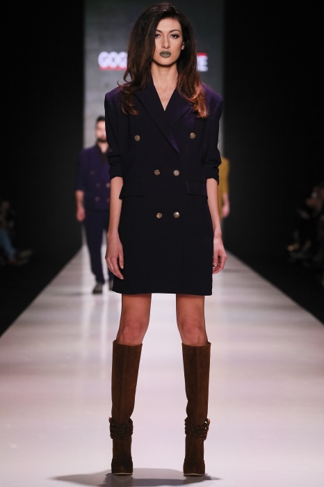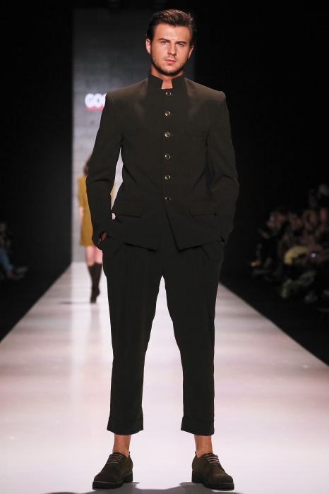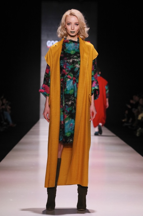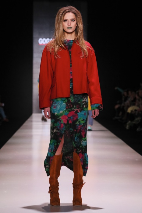 Для стильных городских модников была представлена новая коллекция GOGA NIKABADZE. Расслабленные вещи из натуральных материалов разнообразной цветовой палитры были дополнены плюшевым верхом. Импрессионистских узоров платья, серая сталь комплектов и горчичная сдержанность нарядов перемешивались с костюмами для мужчин и женщин насыщеннофиалкового и деликатномятного цветов.