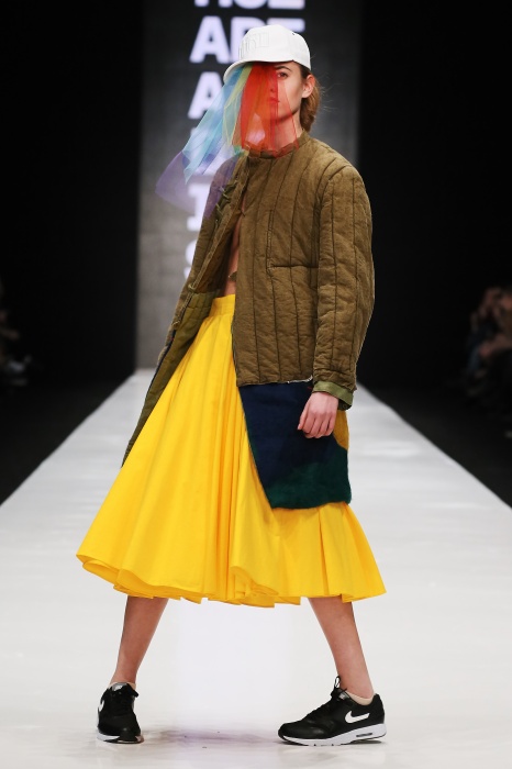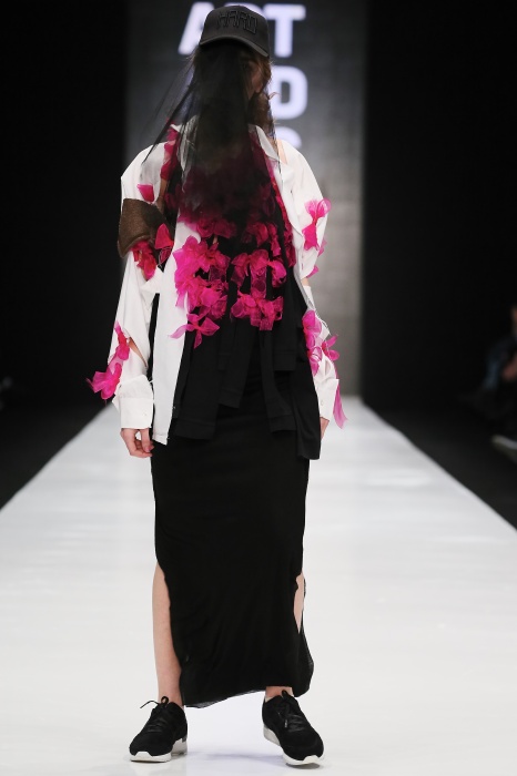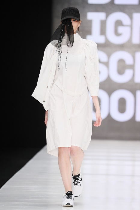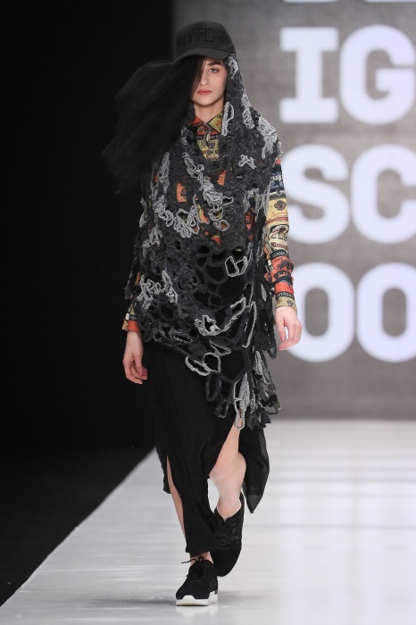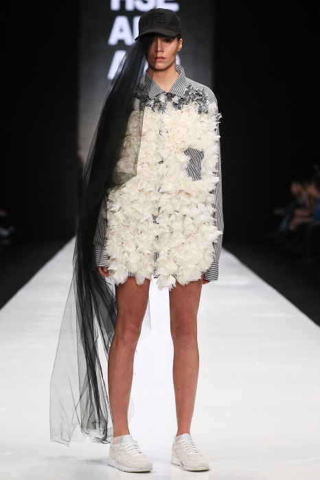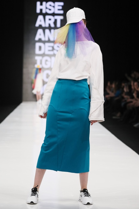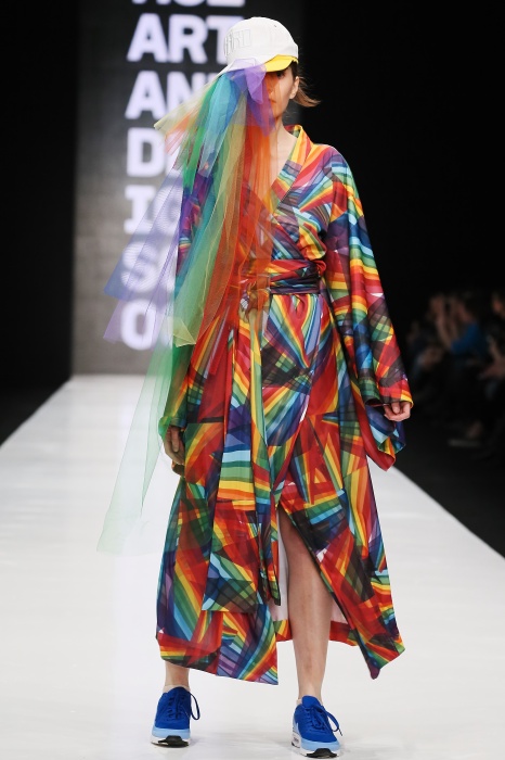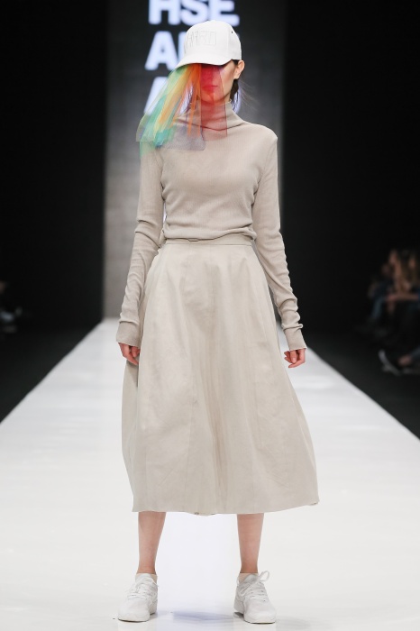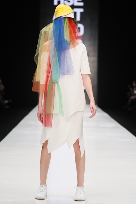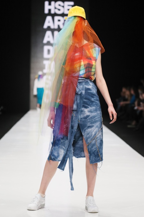Ученики школы дизайна HSE ART & DESIGN использовали цветовые палитры, принты, разные по плотности ткани, отражающие эстетику web-punk, полигонов и плоского дизайна. Серый, карамельно- и пыльно-розовый, радужные перекрещенные полоски и градиенты из лоскутов добавляют свежести и смелости в casual-стилистику.