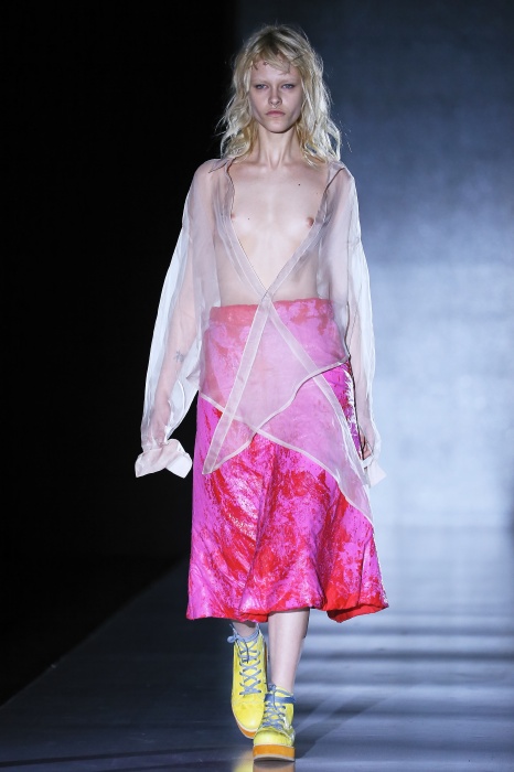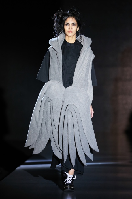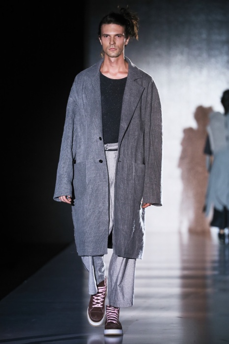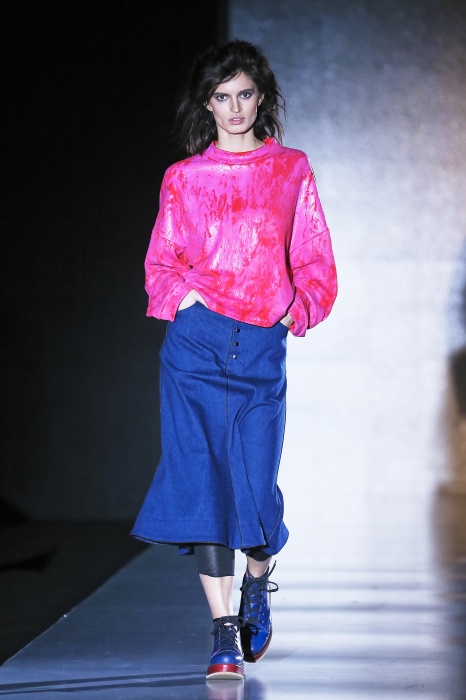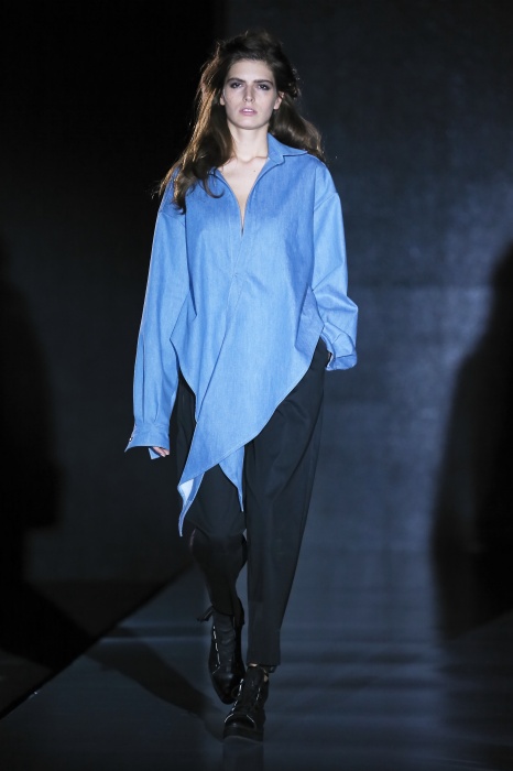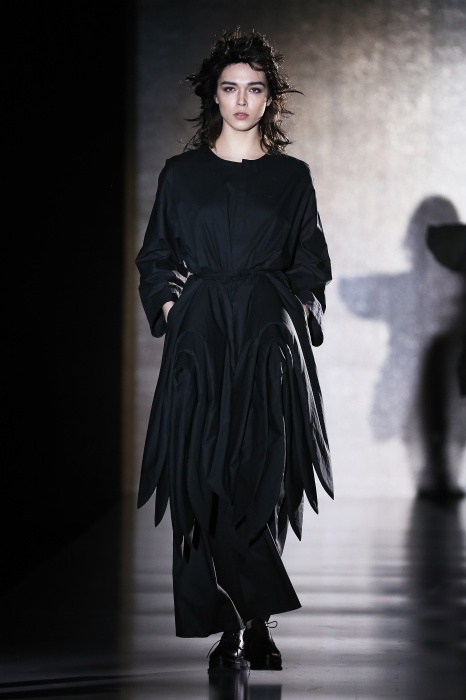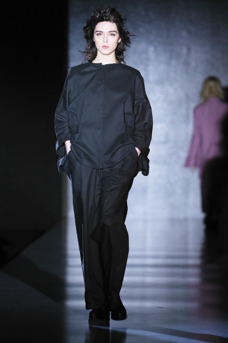 Петербургский дизайнер Евгения Малыгина, создающая одежду под брендом PIROSMANI BY JENYA MALYGINA для сложных творческих личностей, земных богов, славится неповторимым авторским почерком, умением виртуозно работать с драпировками и создавать новые миры, используя минимум красок. В новой коллекции над слоистыми складками и угловатыми конструкциями доминируют минималистичные и, в то же время, монументальные вещиоверсайз. Свитшоты и пальтопиджаки со спущенной линией рукава в дуэте с просторными прямыми укороченными брюками не только универсальны, но и удобны. Любимую монохромную палитру бренда разбавил красный, яркомалиновый, светлый розовый холодного спектра и оттенки синего. Материалы разнообразны и удачно миксуются друг с другом – деним, подчеркнутый необработанным краем, хлопок и лен. Эксперименты с фактурой проявляются в эффекте жатой ткани и уже знакомом приеме – глянцевых штрихах на матовой поверхности.