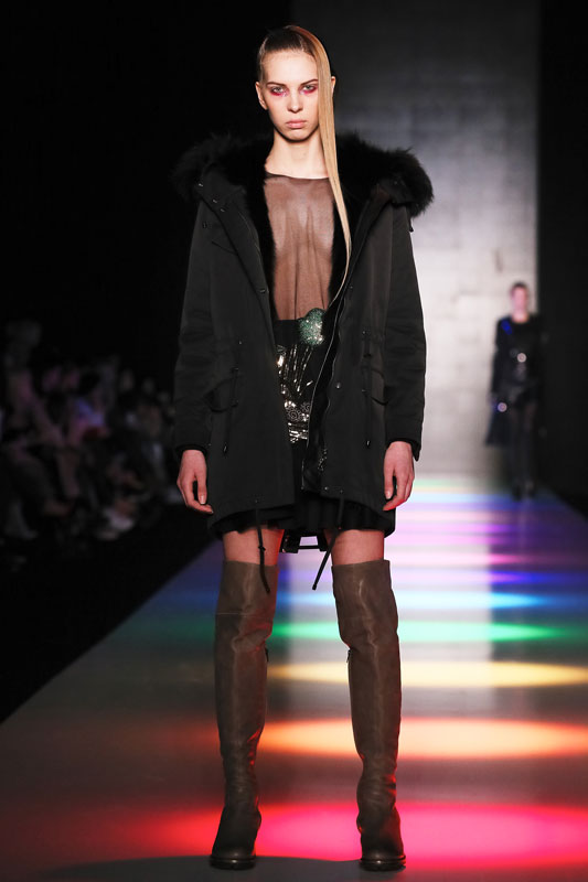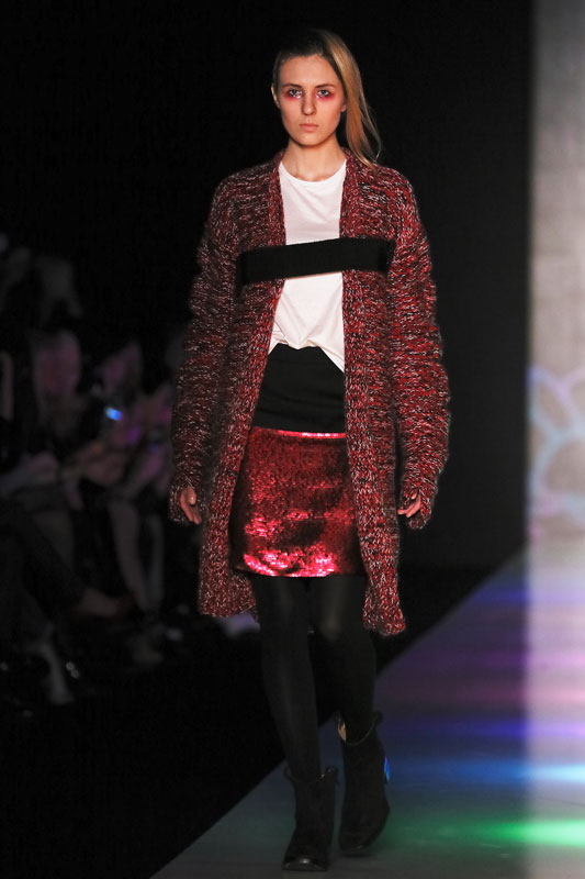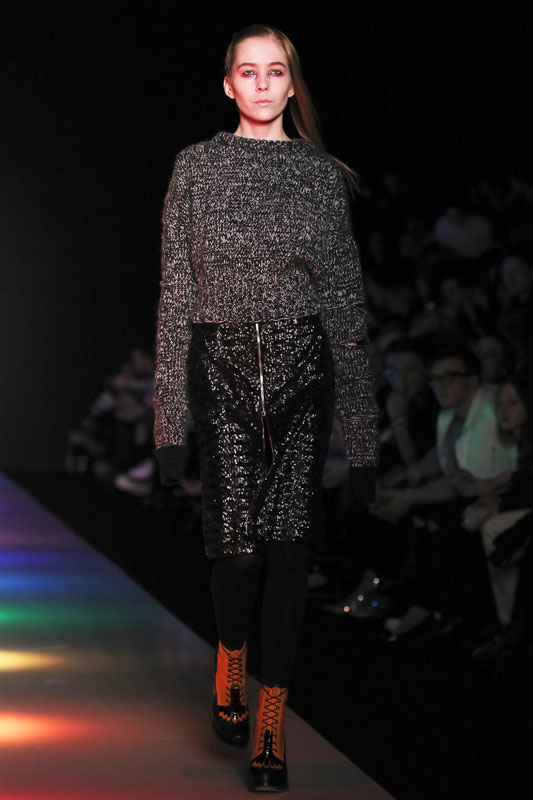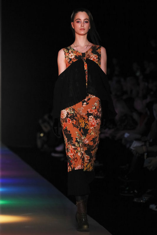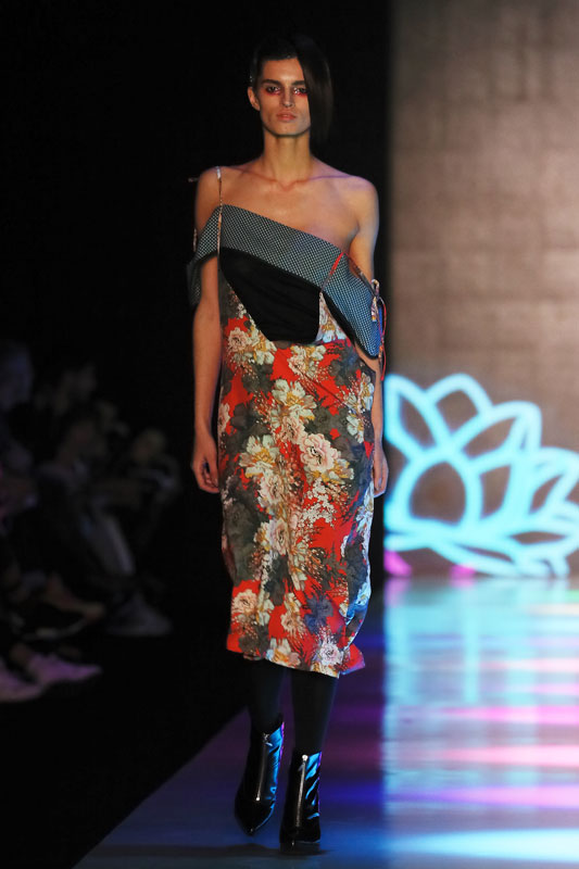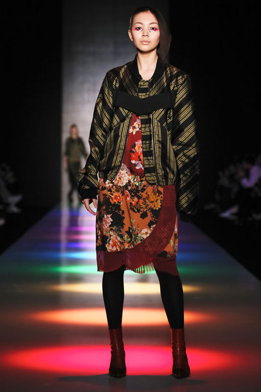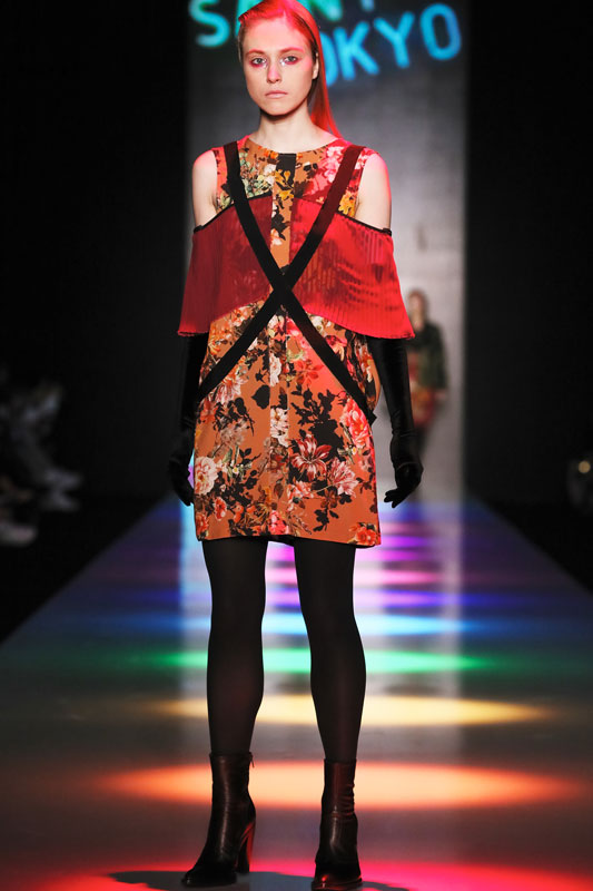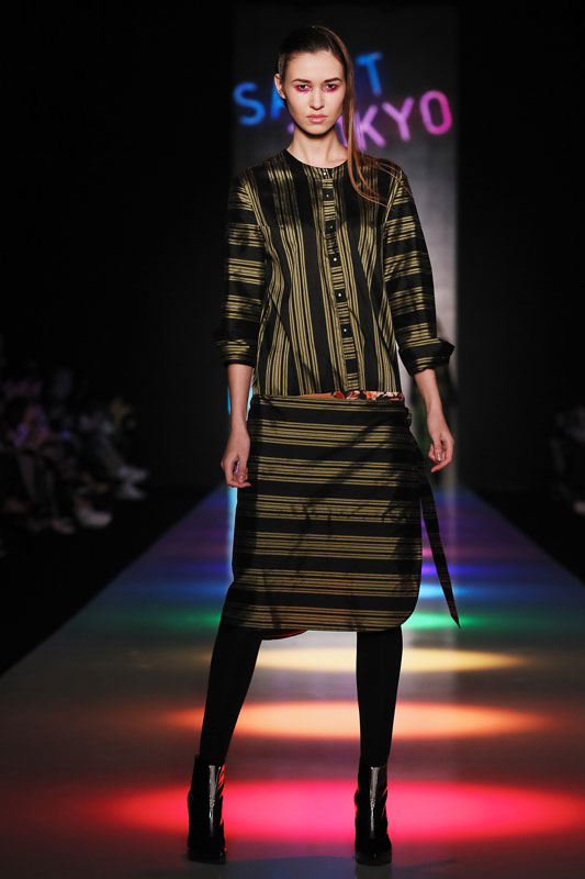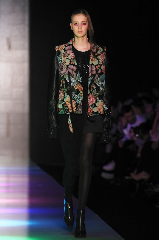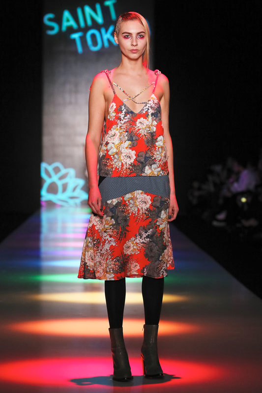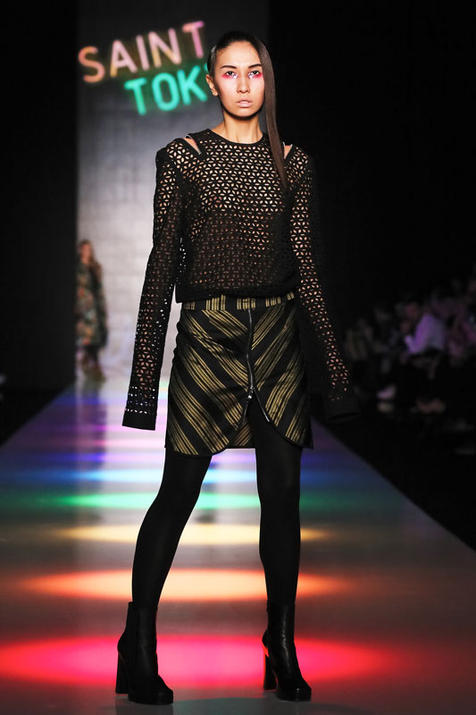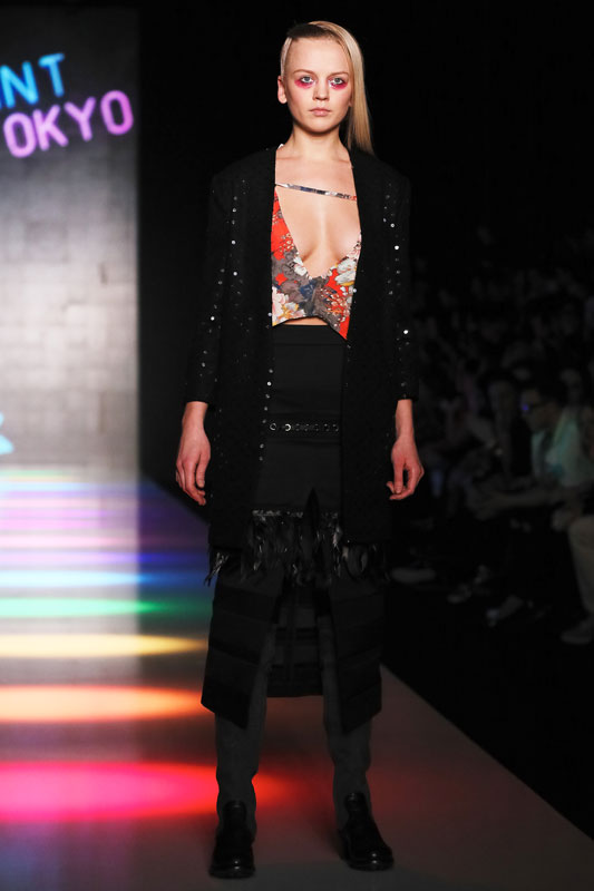 Дизайнер бренда Saint-Tokyo Юрий Питенин представил коллекцию, в которой восточная эстетика сочетается с европейской. Это томный неонуар, расцвеченный гобеленовыми цветами, расположившимися на верхней одежде, платьях и юбках. Уютная шерсть здесь соседствует с пайеточной отделкой цвета розового золота – дизайнер ведет игру не только с фактурами, но и с асимметрией кроя и геометрией линий.