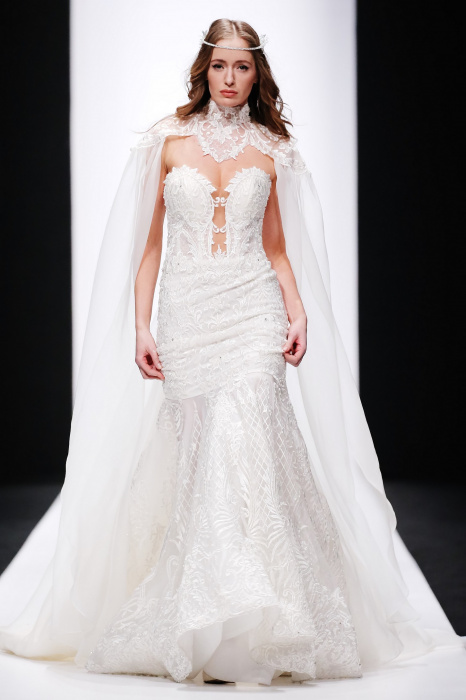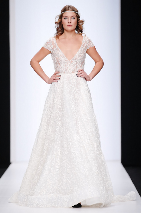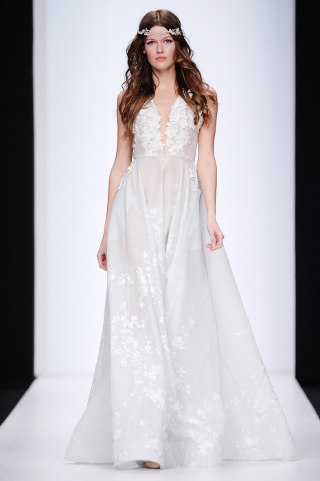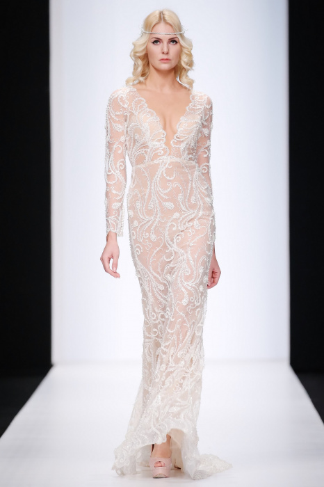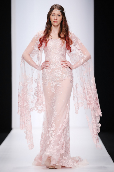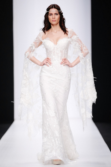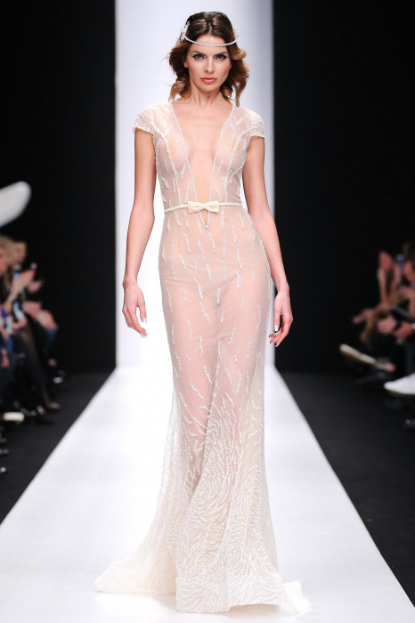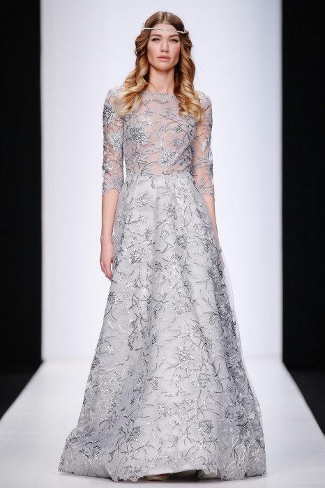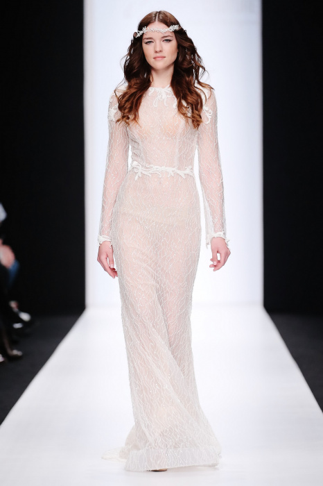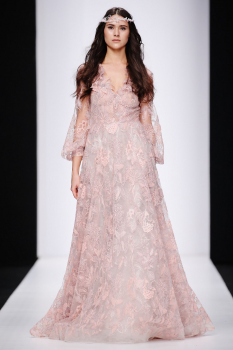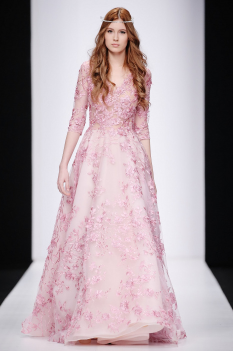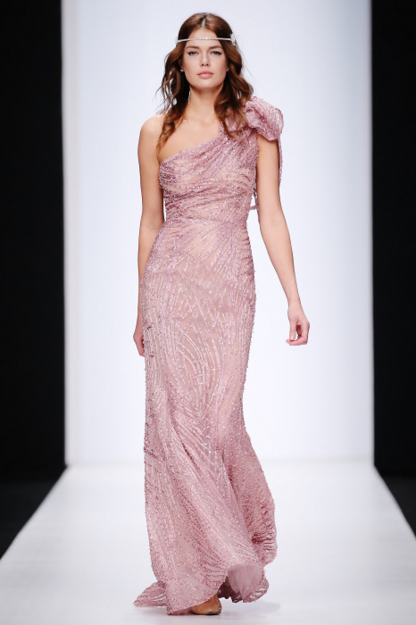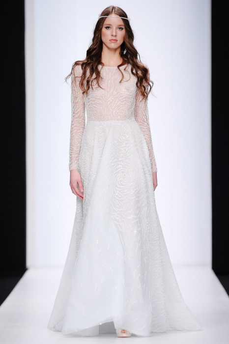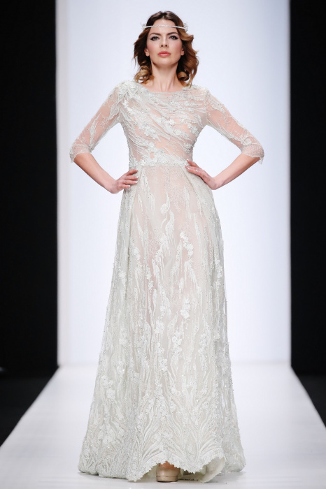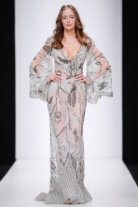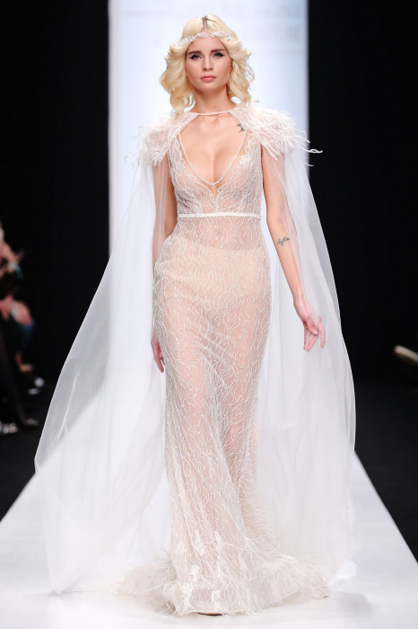 Сияющий в прямом смысле этого слова показ бренда Speranza Couture by Nadezda Yusupova начинается с живой игры четырех музыкантов, которые исполняют классические музыкальные симфонии. Весь показ так же можно описать словом «классический», так как каждое платье выполнено в лучших традициях вечерней и свадебной моды. Здесь большое количество ручной работы, а именно: вышивки, стекляруса, бисера, пайеток, объемных кружевных цветочных вставок. Каждая модель буквально сияет и напоминает диснеевскую принцессу. Прически девушек украшают блестящие металлические венки. В качестве дополнения поверх некоторых вечерних платьев используются прозрачные накидки со шлейфом, расшитые кружевом. Гостей удивляет длинное серебристое платье, полностью декорированное кристаллами с открытой спиной и объемными рукавами. Дизайнер использовала в коллекции пастельные оттенки, тем самым добавив нежности и чувственности в показ, и также насыщенные цвета, как темно-синий и черный. Завершает показ модель в свадебном платье цвета айвори, расшитом пайетками, кристаллами, с кружевными цветами на корсете и длинным шлейфом и фатой.