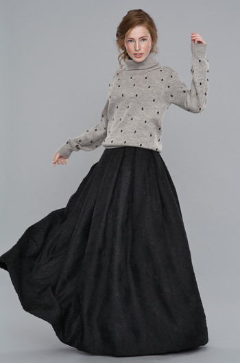 Коллекция осень-2017 марки Victoria Kuksina, ключевыми образами которой стали платья и юбки, построена на контрастах, создавая благородный и сдержанный, и вместе с тем подчеркнуто женственный образ. Фактурный жаккард и намеренно грубый шерстяной трикотаж соседствуют с тонким кружевом и полупрозрачным шелком. Сдержанность основных цветов коллекции – черного, серого, синего, нюд – сбалансирована огненно-красным и анималистическими принтами.