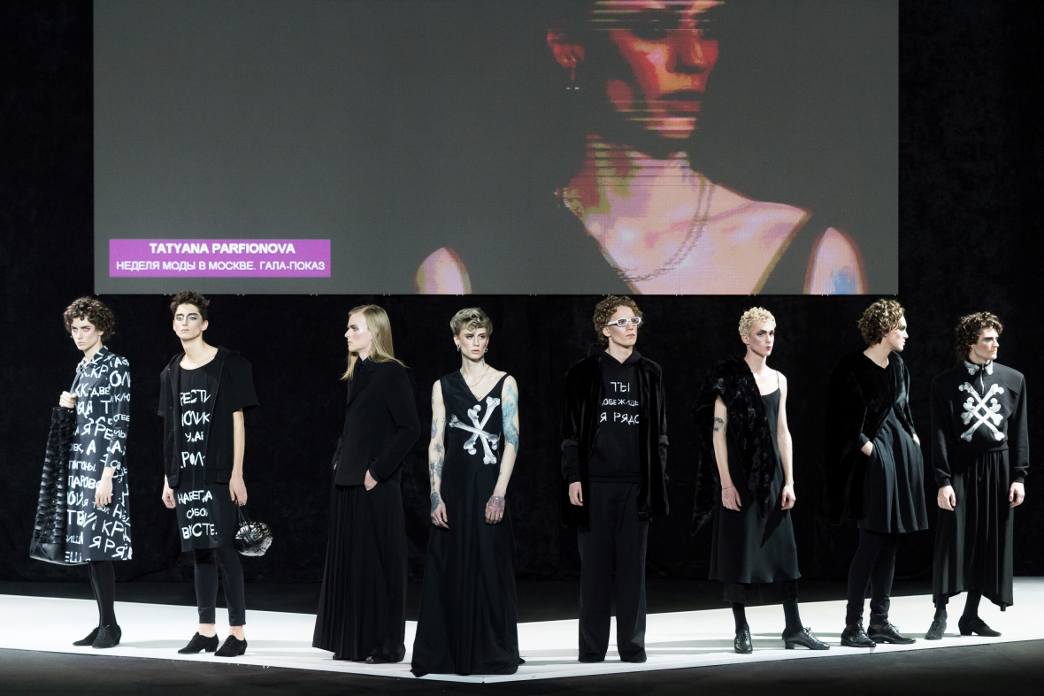 Продолжила Гала-показ капсульная коллекция Модного Дома «Татьяна Парфенова» сезона осень-зима 2019-2020. They - это история героев, которые собрали в себе все самое лучшее от женщины и мужчины. Всепоглощающий черный цвет преобладал в образах, полностью заменив яркую цветовую палитру. Каждый элемент коллекции отличался друг от друга разнообразием фактур – шелк, шерсть, трикотаж и искусственный мех эффектно смотрелись на моделях, не нуждаясь в дополнительных деталях.