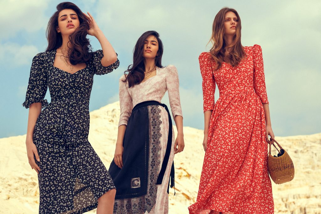 Цветовая палитра: классические черный, белый и бежевый цвета разбавляют летние зеленый, голубой и красный. Изделия украшают авторские цветочные принты.