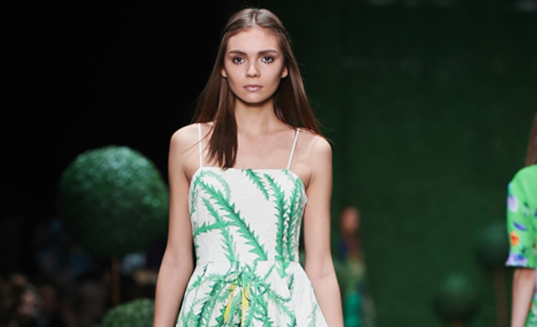 Для создания солнечного образа, Valentin Yudashkin предлагает теплые пастельные оттенки. В своем показе он делает упор на нежно-персиковые оттенки теней и помады, а также на светло-оранжевую палитру для помады и румян.