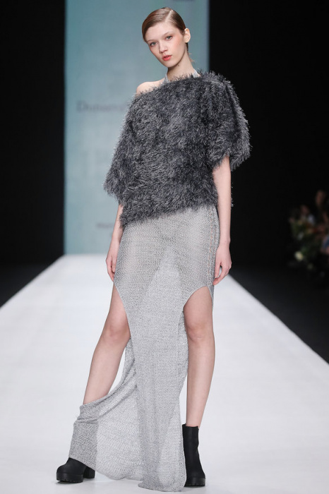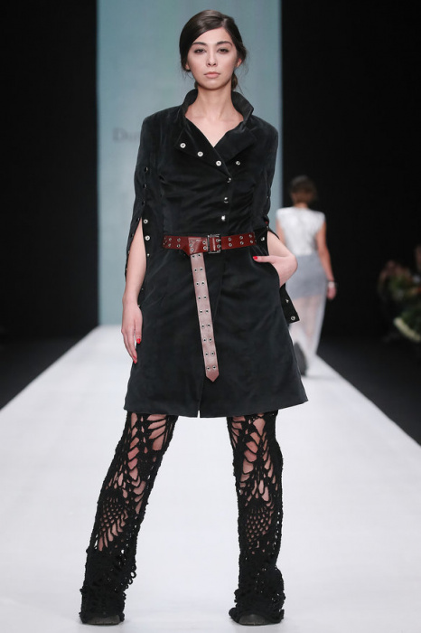 Коллекция бренда Dunaeva&Pospelova – настоящее олицетворение рыбацкого стиля: вязаные платья и юбки в виде рыболовной сетки тому подтверждение. В коллекции представлены вещи для взрослых, детей и подростков: это и вязаные длинные кардиганы, и береты, и кожаные жилеты, и кейпы из замши, и жилеты-косухи. Главные цвета коллекции: оттенки морской волны, начиная от светло-синего и заканчивая темным, цвет бургунди, серый и серебристый.
