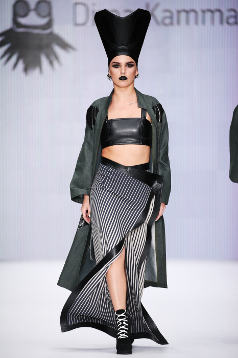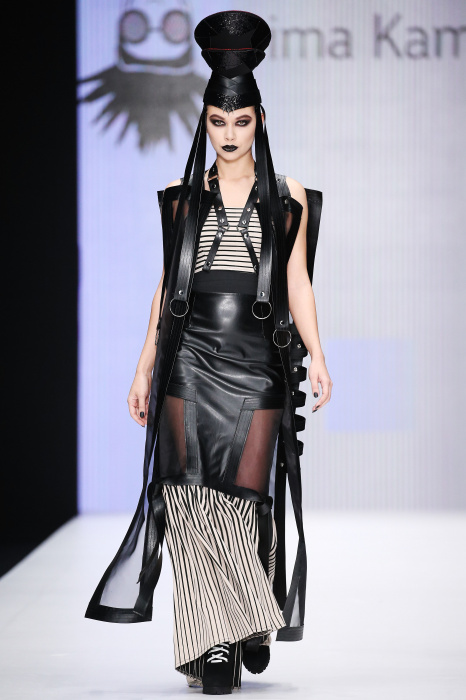 Если быть откровенным, то часто полет дизайнерской фантазии пролегает по таким маршрутам, что на посадке мы получаем продукт, который «носибельным» можно назвать в случае, ну например, если вы едете на карнавал в «Кащенко». Но создатели коллекции «As a Mountain», при крайней её смелости и даже провокационности, попали точно в цель. Взвинтить эпатажность до небес своими неземными образами и при этом остаться, что называется, ближе к людям – это высшее мастерство. Здесь сразу обращает на себя внимание фундаментальный концепт авангардной коллекции в стиле унисекс, какое-то абсолютно свежее осмысление образов и тончайшая техническая проработка каждого лука. Удивило исполнение композиций, тут гармонируют и лаконичные платья, туники, юбки с брутальными изделиями из кожи и джинсы, и минималистичный декор с экстравагантными головными уборами, и металлическая фурнитура с оригинальным рисунком, выполненным вручную. Видимо отсюда-то восторженный прием публики – зритель видит не просто что-то инновационное, да и просто красивое, но и то, что непременно хочется примерить на себе. А как подобные образы будут смотреться вне дефиле? Сдается мне так, что окружающие от восторга приоткроют рты, а завистники их прикроют. А кому этого, хотя бы иногда, не хотелось (девушки поймут особенно). Хочу отметить подбор моделей - колоритно, да и попросту аппетитно. И тут создатели не промахнулись, каждая модель на своем месте.