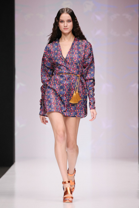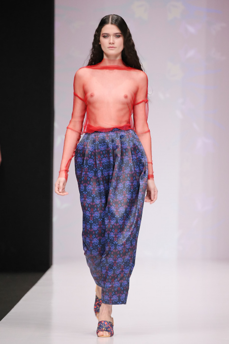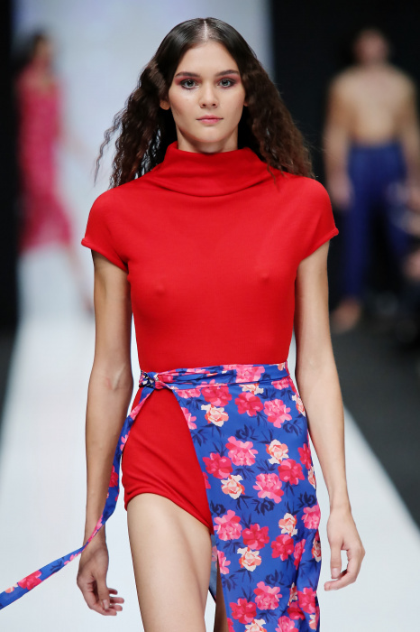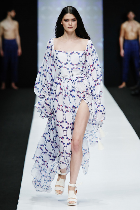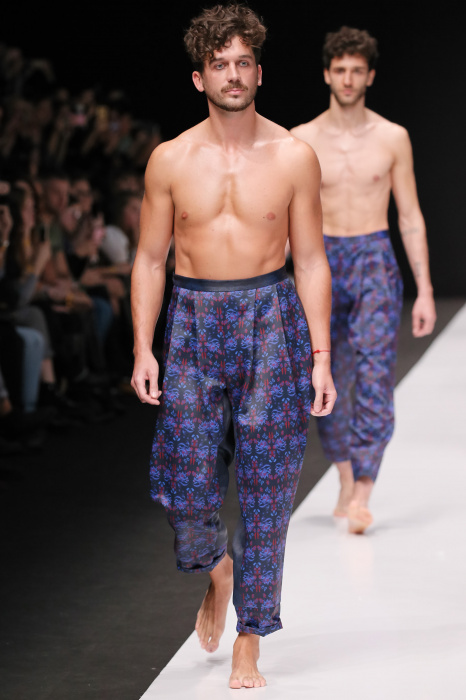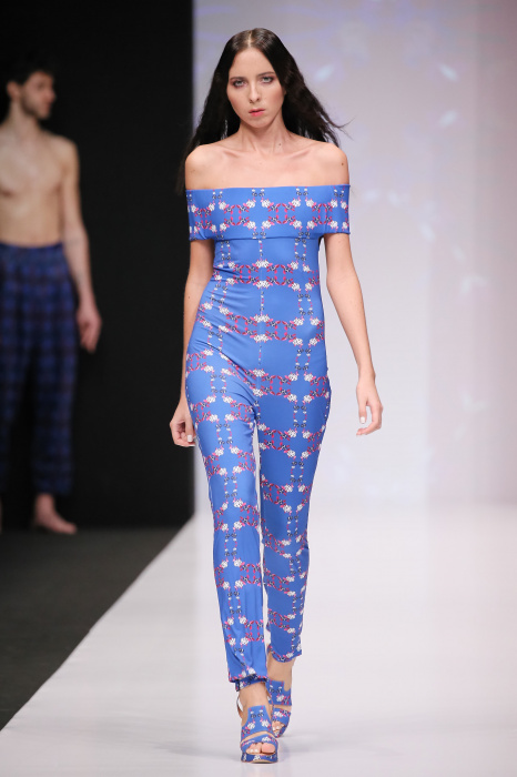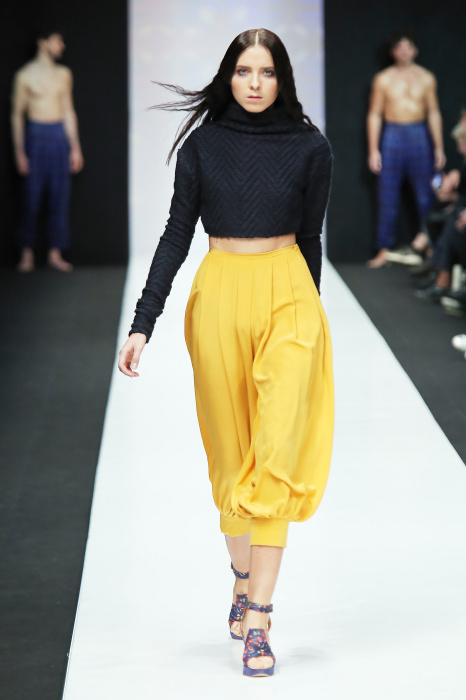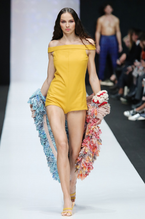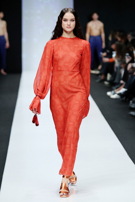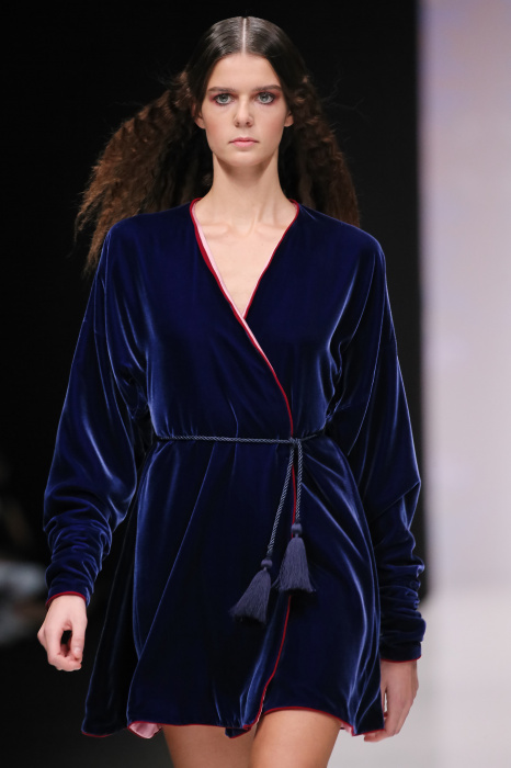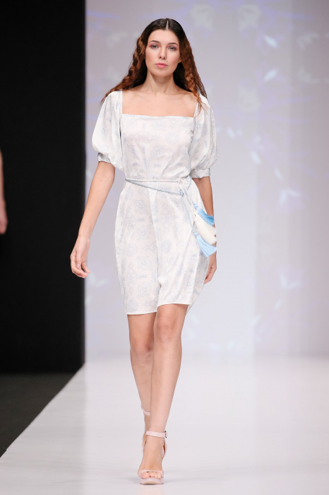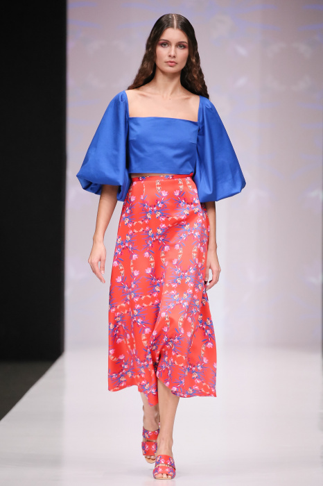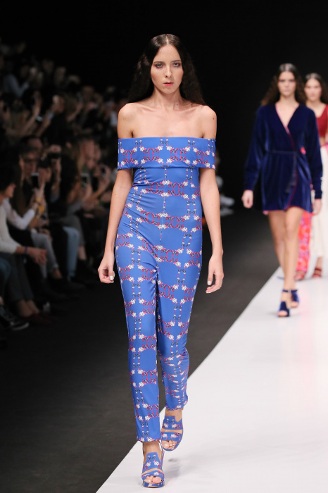PORTNOY BESO наделил весенние и летние наряды балканским колоритом. Древние орнаменты, щедро рассыпанные по тканям, по-южному насыщенные цвета являются лейтмотивом коллекции. Пронзительный синий, нежная роза, горчица и терракота оттеняют загорелую кожу и создают ощущение праздника. В нарядах от PORTNOY BESO воплотился восточный идеал красоты: тонкая талия, подчеркнутая поясом с кистями, открытые плечи, округлые оверсайз-рукава, тончайшие шаровары и разноцветные шелковые юбки. Среди интересных находок – вельветовые боди и авторская обувь, подобранная по принципу колор блок.