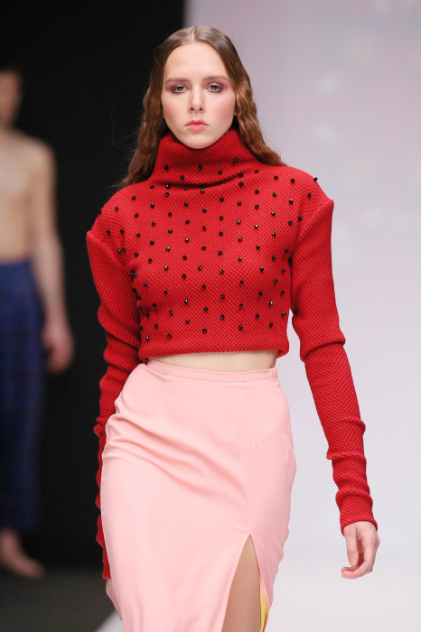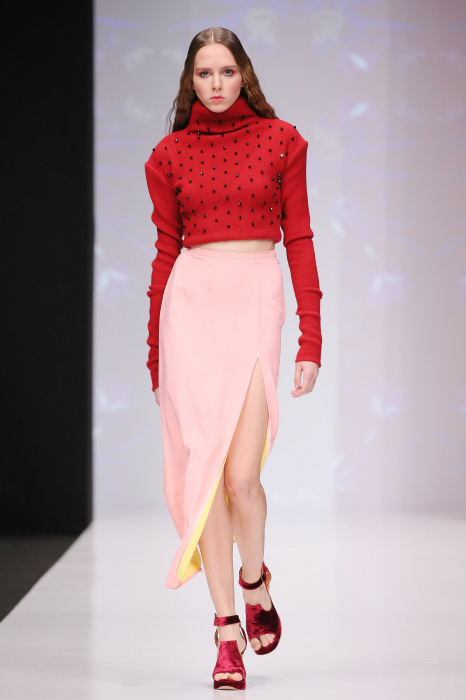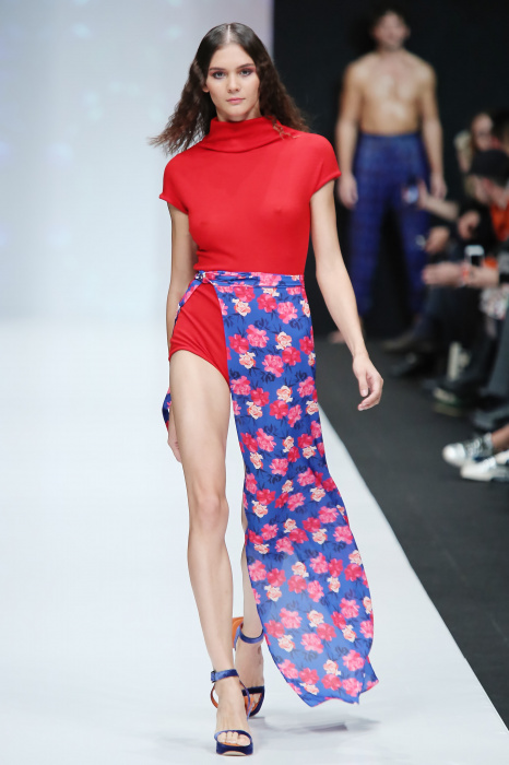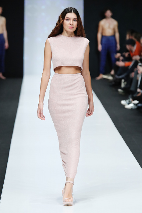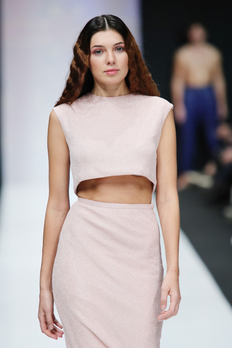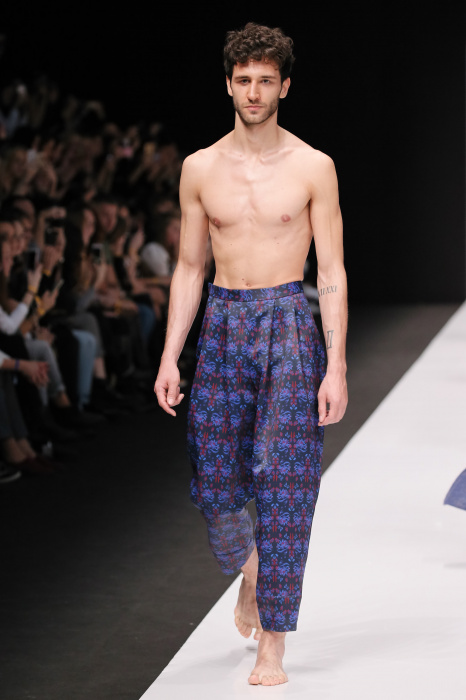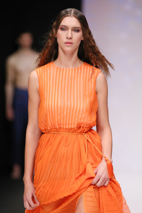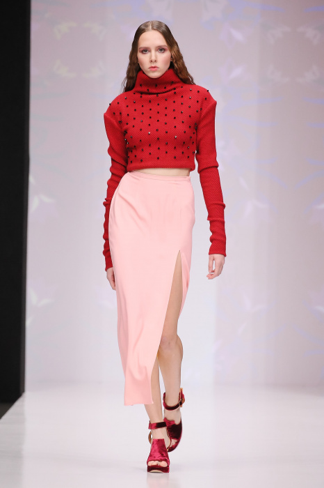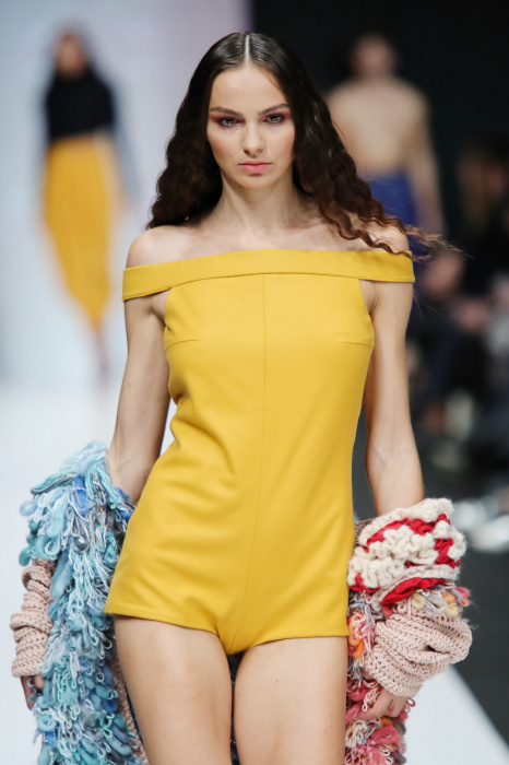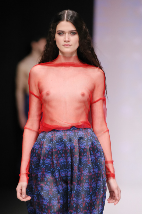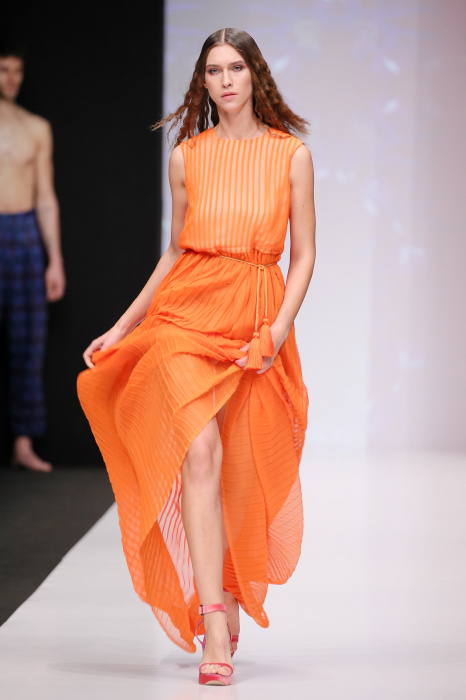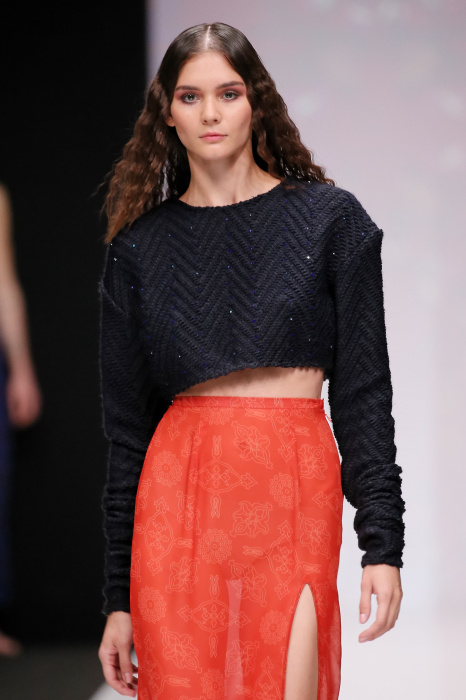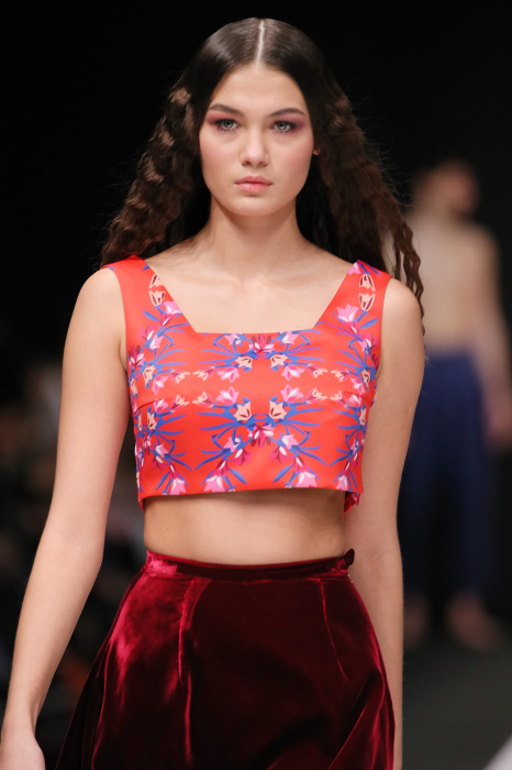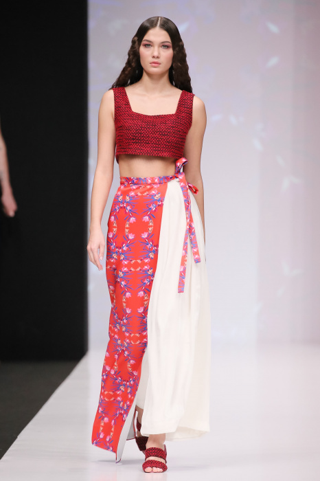 PORTNOY BESO наделил весенние и летние наряды балканским колоритом. Древние орнаменты, щедро рассыпанные по тканям, по-южному насыщенные цвета являются лейтмотивом коллекции. Пронзительный синий, нежная роза, горчица и терракота оттеняют загорелую кожу и создают ощущение праздника. В нарядах от PORTNOY BESO воплотился восточный идеал красоты: тонкая талия, подчеркнутая поясом с кистями, открытые плечи, округлые оверсайз-рукава, тончайшие шаровары и разноцветные шелковые юбки. Среди интересных находок – вельветовые боди и авторская обувь, подобранная по принципу колор блок.