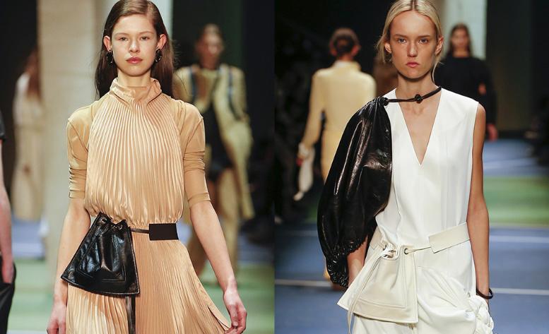 В предстоящем сезоне дизайнеры предлагают носить такие сумочки, как в повседневной жизни, так и в сочетании с вечерними и коктейльными платьями. У Givenchy крошечная сумка-кошелек на поясе выглядела очень аккуратно, нежные плетеные сумочки представлены у Zimmermann , а прямоугольная сумка на поясе из коллекции NoonByNoor смотрелась очень стильно. Присутствует этот аксессуар и в весенних коллекциях MarcJacobs, PublicSchool, Rochas. Отличиться решили AlexanderWang и Balenciaga, предложив носить поясные сумки через плечо.