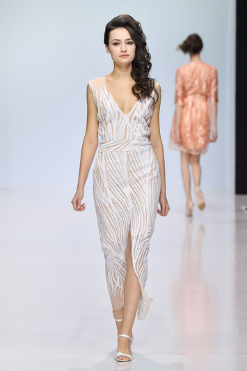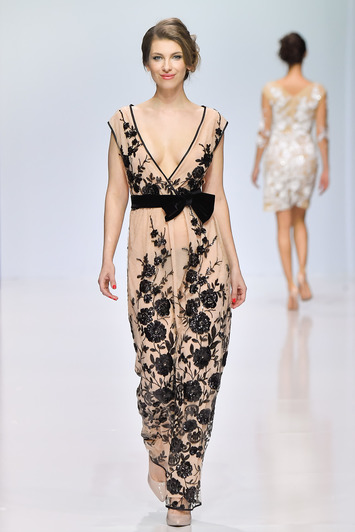 В коллекции использованы только натуральные материалы: шелк, органза, кружево. Особое внимание Tatyana Zatolokina уделила декоративным элементам: платья украшают россыпи цветов ручной работы. Нежная цветовая гамма придает образам загадочность, чувственность и элегантность.