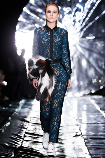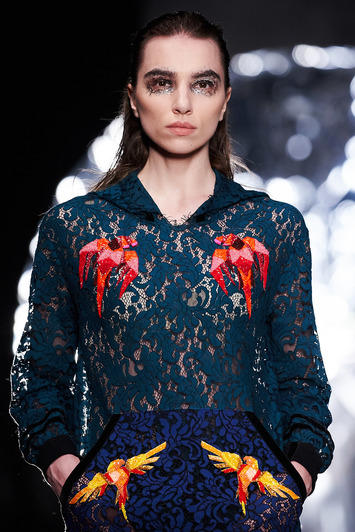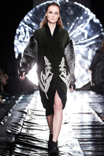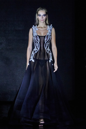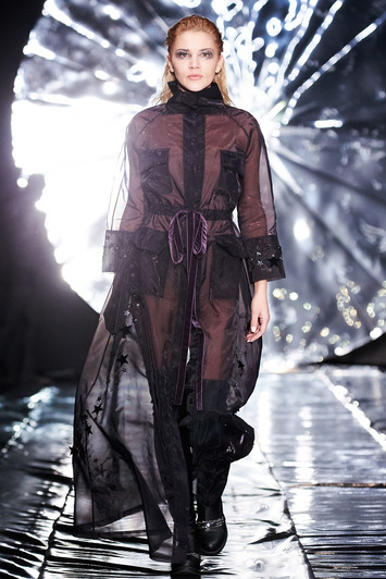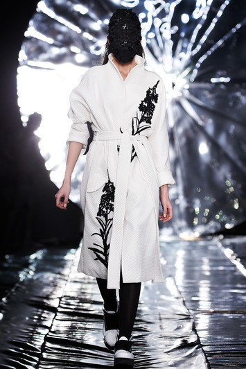 Коллекция SENSUS COUTURE – это неустанный поиск новизны. Каждый образ погружает в отдельное потустороннее пространство и предлагает изучить неизведанные грани: космические полупрозрачные платья-накидки, блестящие бомберы, мерцающие маски меняются мистическими образами и современным видением реального мира: аккуратными кружевными комбинезонами, черно-белыми костюмами-двойками, а также пальто и куртками с деликатными деталями – яркой или монохромной вышивкой. Коллекция соблюдает выверенную пропорцию и выполнена в спокойной цветовой гамме – изумрудный, коричневый, белый и черный.