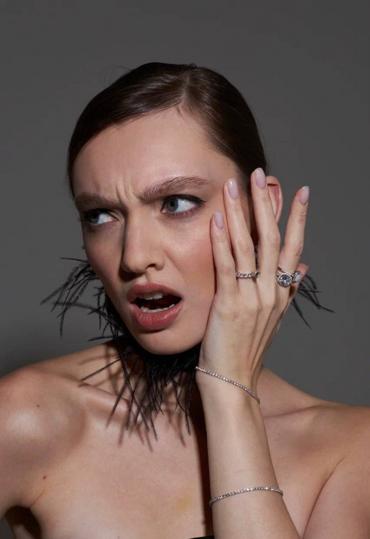 Пока в наших коллекциях вы можете найти и базовые casual серьги, и нарядные вечерние варианты, и хипстерские колье с надписями. Сейчас для меня важно выражаться, и самое главное — доносить, что не надо останавливаться на одном стиле, надо экспериментировать. Нужно ломать привычные рамки и носить акцентные, блестящие, нарядные серьги с джинсами и белой футболкой, а вечернее платье стилизовать минималистичными хупами и тёмными очками, как это делает Хейли Бибер.
