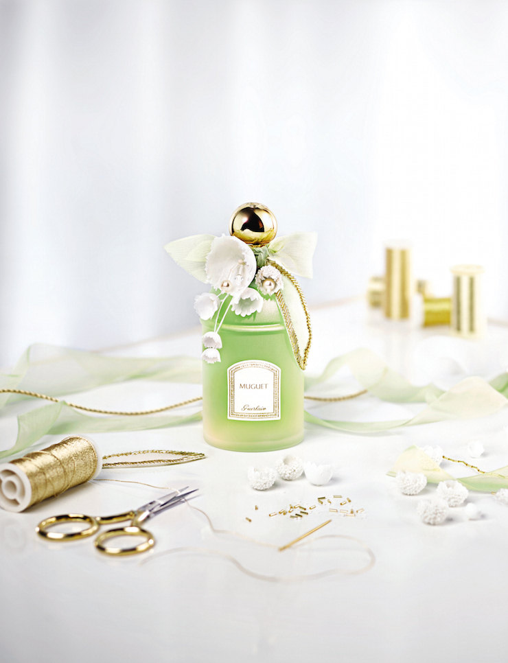 Ежегодно 1 мая Guerlain выпускает коллекционный аромат Le Muguet. В этом году матовый флакон украшает вышивка в виде распустившихся бутонов ландыша, которому посвящают парфюм. Всего выйдет 300 экземпляров. Продажи будут идти только один день – 21 апреля в корнерах Guerlain в ЦУМе, ГУМе, Смоленском Пассаже, торговом доме «Весна» в филиалах Иль де Боте на Ленинском и Маросейке и в Рив Гоше в универмаге «Цветной».