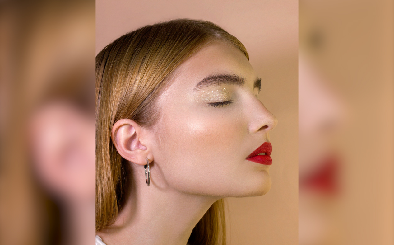 Анастасия, создательница бренда Экомэйк, наносит макияж модели