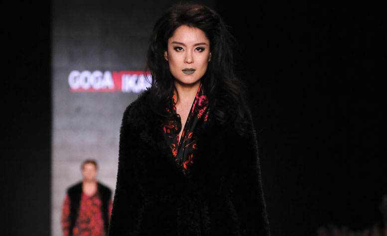 Для стильных городских модников была представлена новая коллекция GOGA NIKABADZE. Расслабленные вещи из натуральных материалов разнообразной цветовой палитры были дополнены плюшевым верхом. Импрессионистских узоров платья, серая сталь комплектов и горчичная сдержанность нарядов перемешивались с костюмами для мужчин и женщин насыщенно-фиалкового и деликатно-мятного цветов.