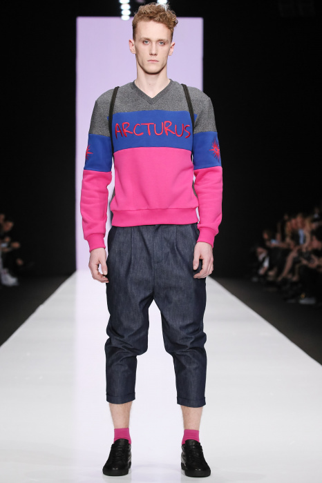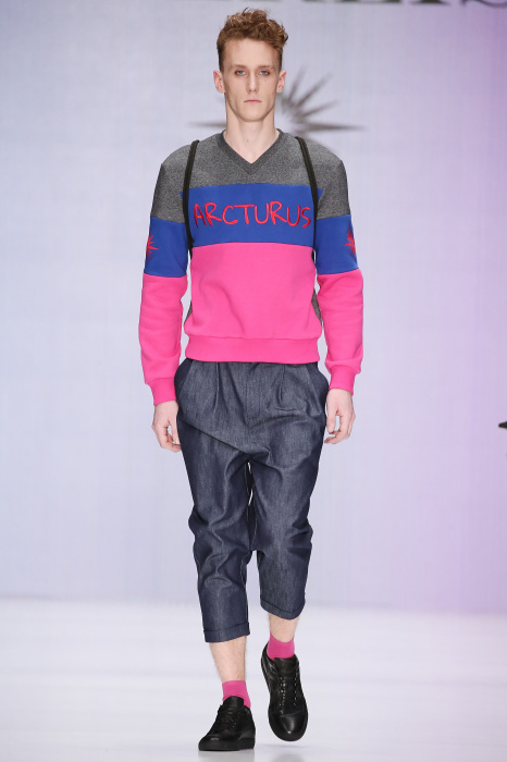Осенне-зимняя коллекция «Арктур» (Arcturus) дизайнера VADIM MERLIS – это легкость движений, четкость линий, выверенность кроя. В линейке представлены вещи для прогрессивной молодежи, стритстайлеров и трендсеттеров большого города. Милитари здесь соседствует с глэм-роком, а кэжуал – с клубными нарядами. Символом коллекции стала Арктур – звезда всех влюбленных, безбашенных и дерзких.