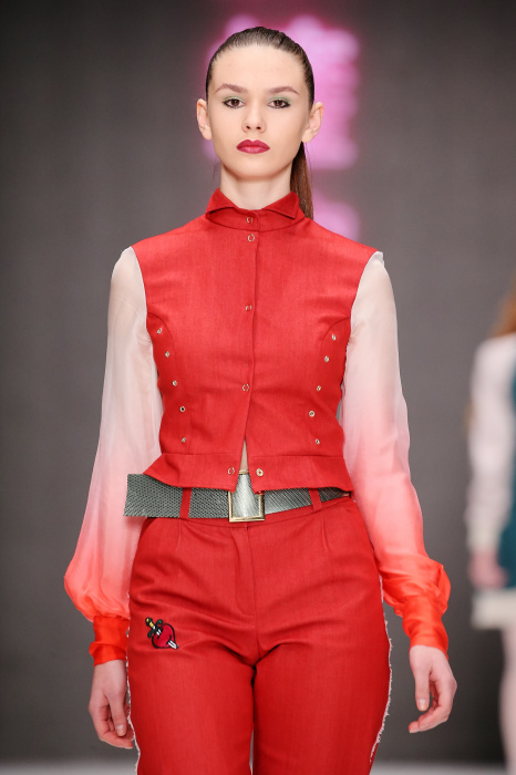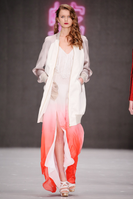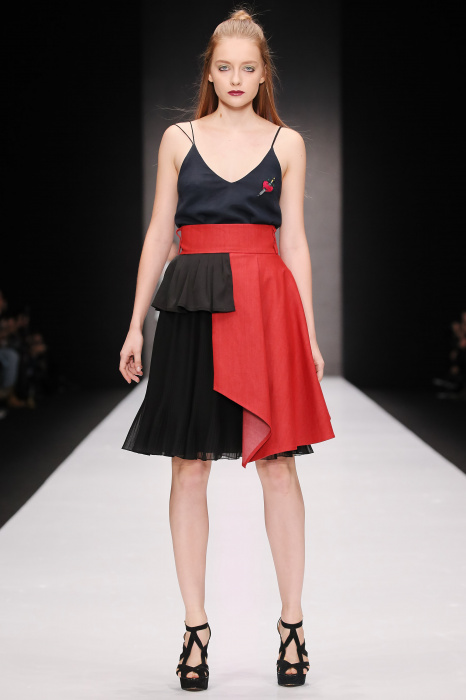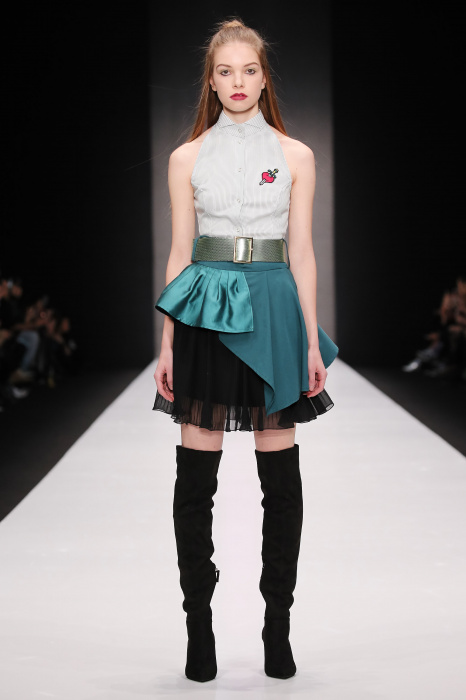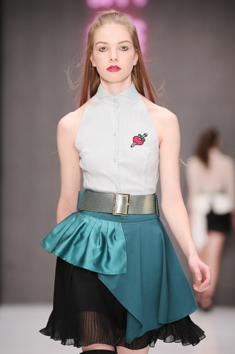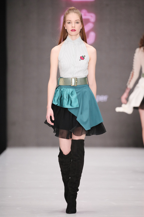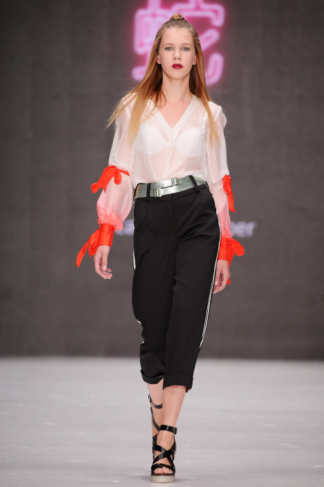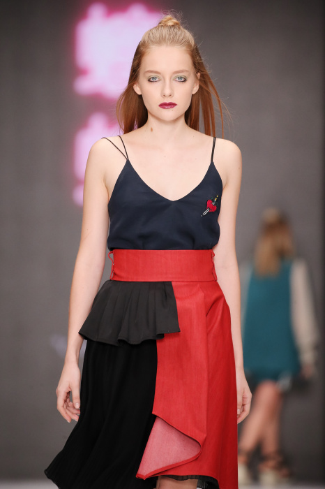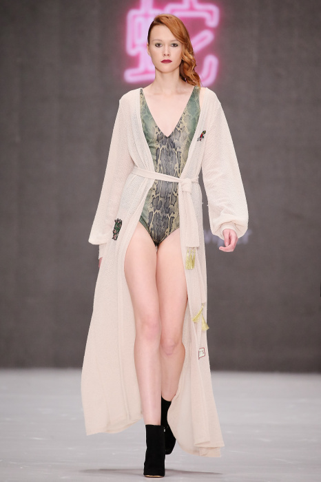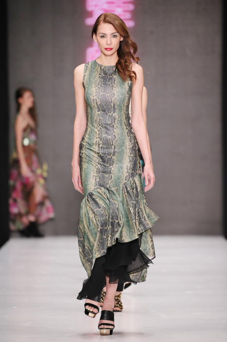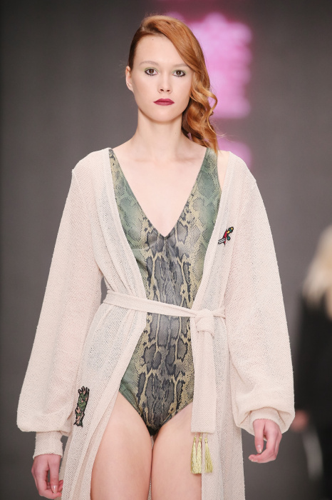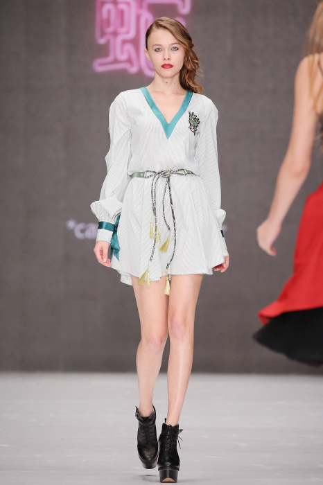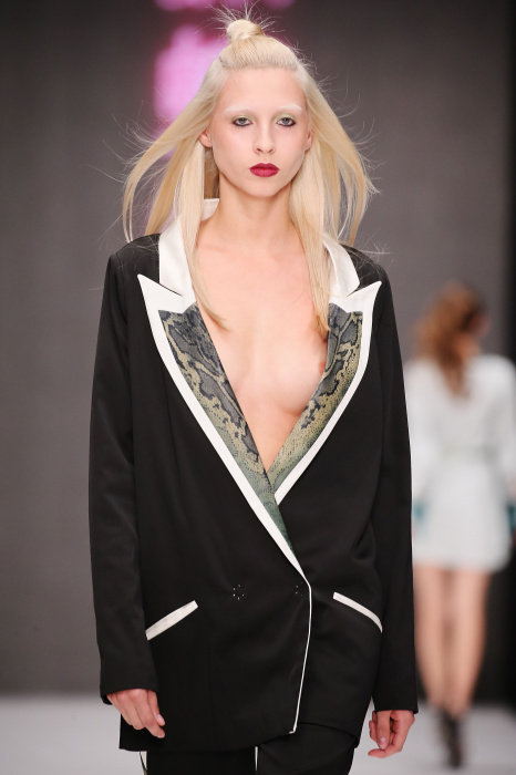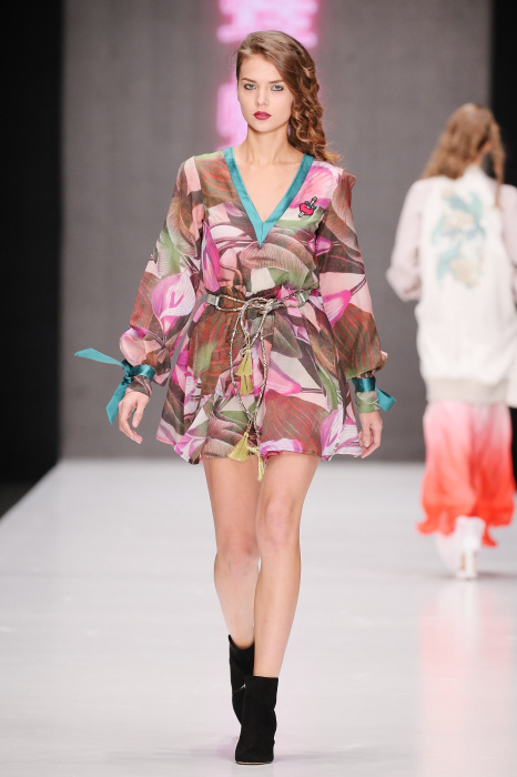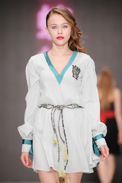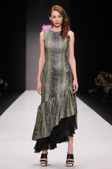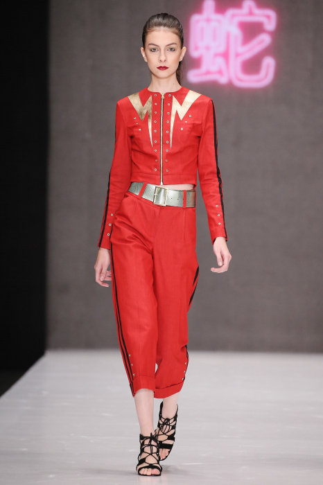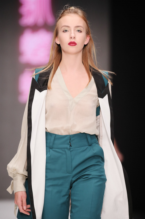 «Catch the viper» от VIPERS – история родом из Азии. Предваряли показ иллюстрации в восточном стиле и китайские иероглифы. Модели скользили по подиуму, неуловимые как змеи в траве, как рыбы в озере или ветер в саду. Эти образы рождаются из цветовой палитры: зеленый металлик, зеленые полосы, градиент, подобный окраске карпов кои, небесный голубой, характерное для азиатского стиля сочетание красного и черного. Сестры Вайпер стилизуют баски под самурайский костюм, одевают моделей в бомберы, брюки с лампасами и гетры на манер азиатских школьниц. В коллекции есть строгие силуэты с американской проймой и брюками с высокой талией и более романтичные с епископскими рукавами, глубокими V-образными вырезами, многоуровневыми юбками. Большинство моделей были украшены символичными поясами с зеленым сиянием.