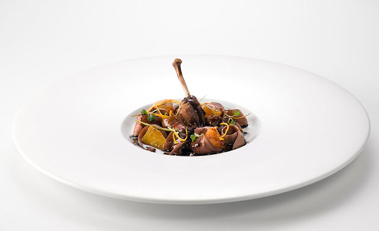 В ресторан довольно сложное меню, которое начинается с пяти закусок, представляющих кулинарные традиции пяти разных уголков мира, за ними следует бонсай оливкового дерева с карамелизированными оливками. Далее идет длинный список гастрономических творений, удивляющих, влюбляющих в себя, а иногда и шокирующих посетителей ресторана. Не стоит удивляться, что столики в заведении забронированы на год вперед.