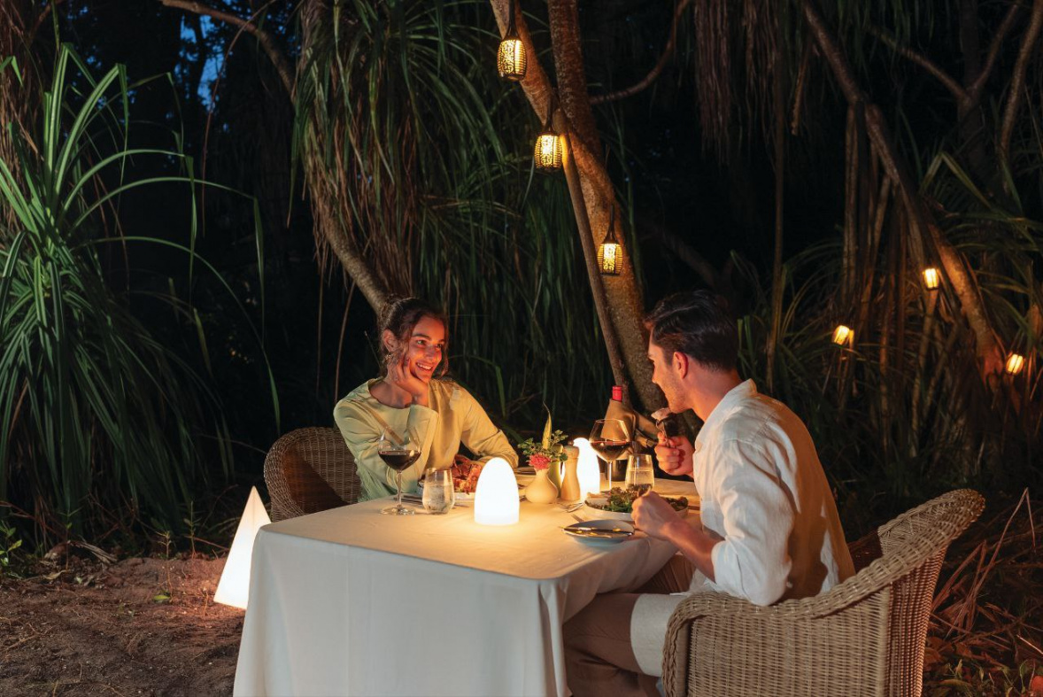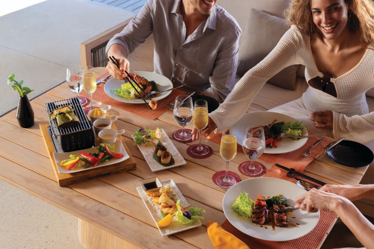 Тщательно продуманное меню включает такие мальдивские специалитеты, как «Рыбный суп RAAYA» – традиционное блюдо, приготовленное на медленном огне с добавлением листьев карри и мальдивского перца чили, или «Шоколадный фадж из Канамаду» – миндальный торт с кокосовым мороженым.