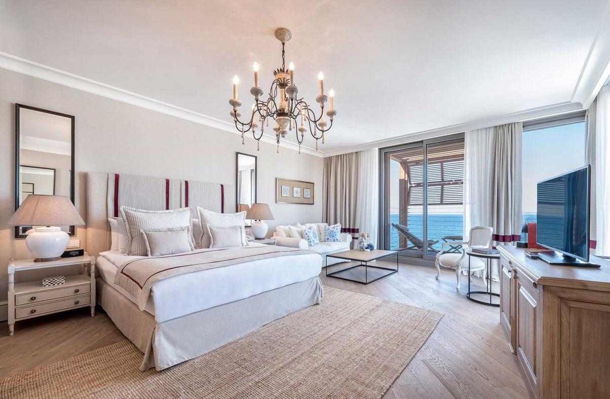 Оформление номеров выполнено из натуральных материалов в естественных тонах. Из каждого номера открывается панорамный вид на море, а частный пляж отеля находится в шаговой доступности.