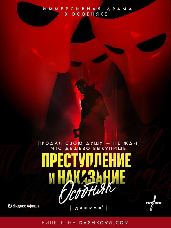 В ноябре в особняке “Дашков, 5” пройдут завершающие премьерные показы иммерсивной драмы “Преступление и наказание” по мотивам одноименного произведения Ф.М. Достоевского. Последние шоу можно будет посетить 10 ноября.